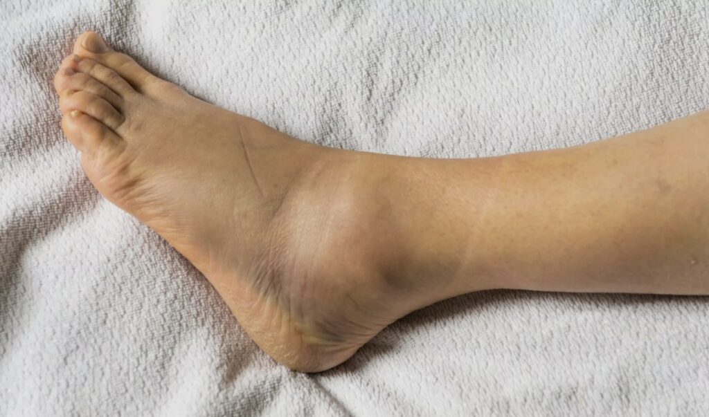 - بالا نگه داشتن: پا را بالاتر از سطح قلب قرار دهید تا تورم کمتر شود